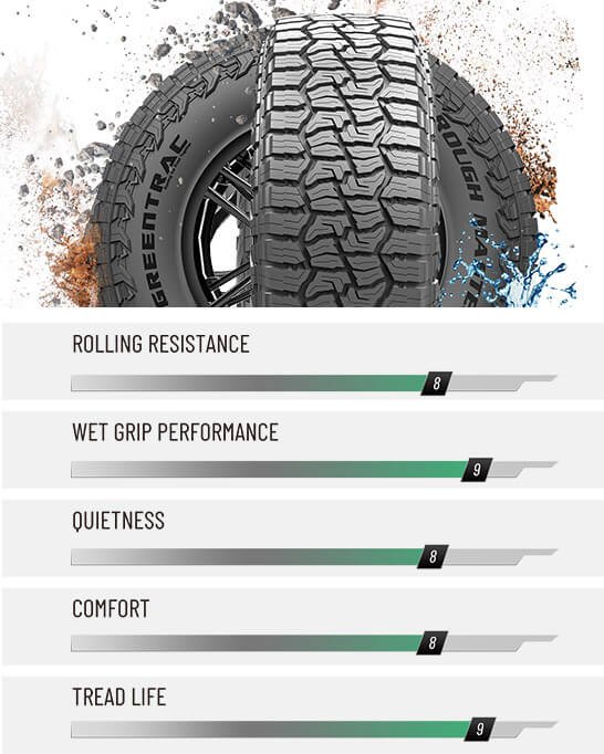 The bumpy peaks design on the shoulders removes the mud and snow rapidly. Excellent handling ability offers terrific driving performance.