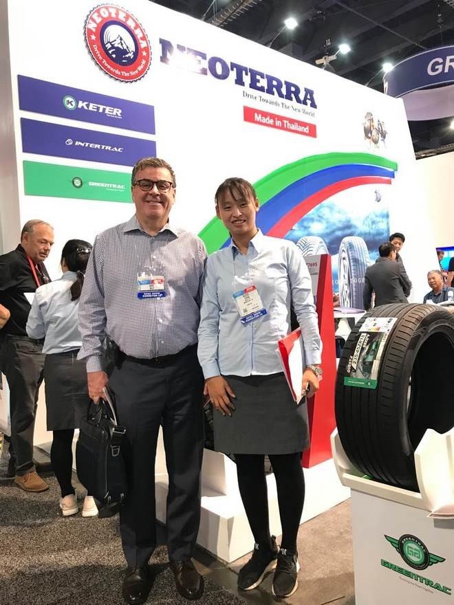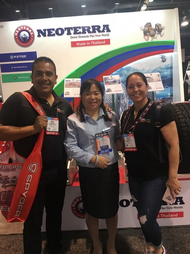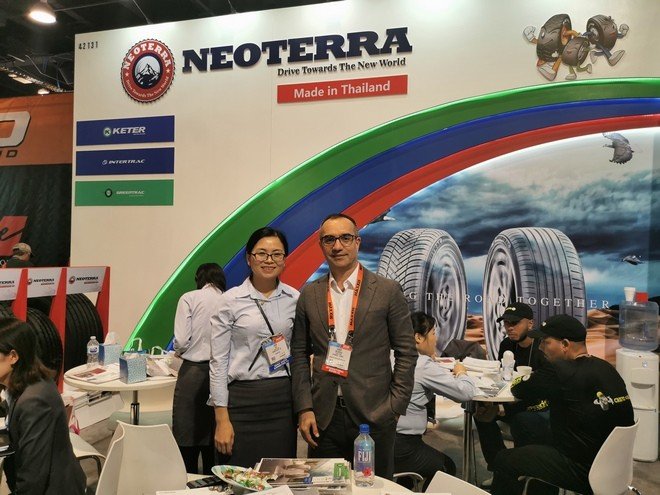 NEOTERRA brand premium PCR & TBR will start production in Thailand next March. Many clients cannot wait to be the first & exclusive dealer for NEOTERRA. The tire samples are very attractive with exclusive designs. Plus, our professional four seasons truck tire is shining in the show, and many customer cannot resist touching it with high praises.